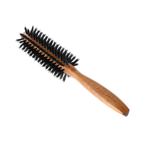As Escovas Circular Duo Force Acca Kappa são escovas de uso profissional concebidas com 12 filas de diferentes tamanhos de cerdas puras de javali e de nylon, construído com madeira kotibé.