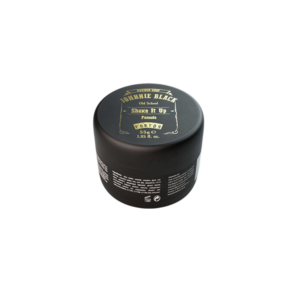 Cabelo e bigode. Modela os cabelos com muito volume, para resultados flexíveis e estruturados. Efeito matte e fixação extra forte. As pomadas Johnnie Black podem ser misturadas e combinadas para conseguir uma infinidade de estilos.